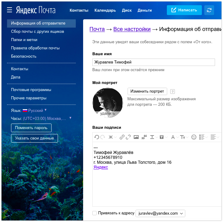 Письма от людей читают чаще, чем рассылки от магазинов. Обращение живого человека важней, чем робота. Чтобы ваше письмо не затерялось среди рассылок, а контакты для связи всегда были у получателя под рукой, добавьте своему ящику подпись и портрет. Аватарку видно в списке писем, а контактные данные в подписи дают возможность связаться альтернативным способом.