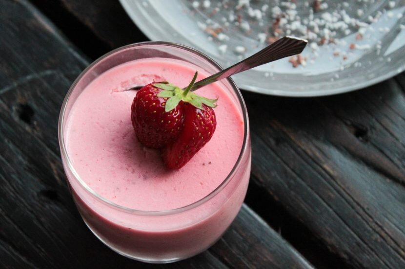 Клубника нравится почти каждому человеку. За что? Почему мы так её любим? Клубника не только очень вкусная, но и очень полезная, питательная, и её можно есть чуть ли не вместо нормальной еды. Она содержит на 100 г. всего 7,5 углеводов и 40 калорий. В 100 граммах содержится дневная норма витамина С. Для тех кто хочет вставить клубнику в свой дневной рацион вот 3 вкусных рецепта. Клубнично-йогуртовое желе 6 порций ~ 200 г ~ 20 мин + время на застывание желе ~ 100 ккал Ингредиенты: Клубника — 300 г Йогурт классический — 300 г 2 пакетика желатина ( на 1 л жидкости) Молоко — 200 мл Мёд — 50 г Сок половинки лимона По инструкции залить желатин водой комнатной температуры. Даем набухнуть. Клубнику нужно промыть и отчистить он хвостиков. После этого измельчаем клубнику до получения однородного пюре. Добавить йогурт, лимонный сок и мед и заново взбиваем до однородной массы. Молоко нужно нагреть на плите до появления мелких пузырьков, но не до кипения. После вливаем