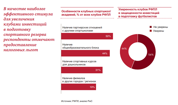 Недавно вышел отчёт PwC по исследованию РФПЛ. Предлагаю освежить память и прикрепляю несколько интересных статистических графиков. И отвечаю на вопрос: почему мы нередко, мягко говоря, сталкиваемся с отсутствием клиентоориентированности от футбольных клубов, даже в РФПЛ? Может потому, что у 1/4 клубов вообще нет CRM-системы, а ещё 45% клубов только планируют ее вводить в действие? Действительно, зачем изучать свою аудиторию, если можно получить бюджет региона и/или просто «забить» на болельщика. Ещё потому, может, что 25% клубов не имеют рекламного бюджета на продвижение матчей? Хотя и с 0-ми затратами можно сделать отличное промо любого матча. И привлечь новую публику. Своими силами, да-да. Инструментов много. Причём, есть кому работать: средняя (по клубам) численность департамента коммуникаций - 7 человек, коммерческого - 12. Ещё интересное: 44% клубов РФПЛ не уверены в защищенности инвестиций в подготовку футболистов. Почти половина клубов не уверены, что это надежно и разумно. Л