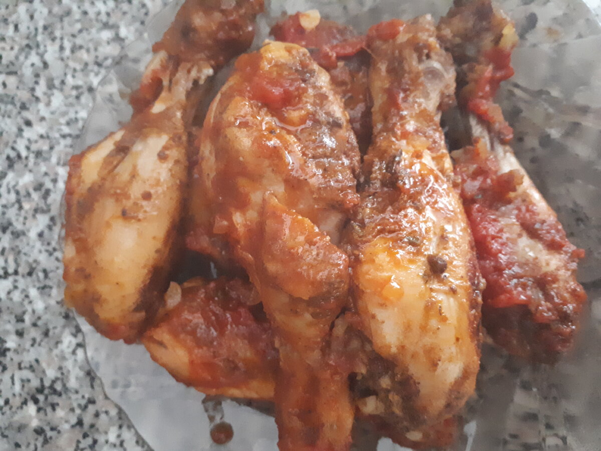 Ингредиенты: 8-10 куриных ножек, 3 штуки репчатого лука, 7-10 зуб. чеснока, 6 столовых ложек оливкового масла, 1 ст. красного вина, 3 столовые ложки томатного соуса, перец, соль по вкусу, набор специй для мяса или курицы, 3 веточки розмарина. И так: Промойте куриные ножки, обсушите салфетками или бумажными полотенцами, натрите специями, солью и перцем, положите веточки розмарина на ножки, оберните пищевой пленкой и поставьте на 20 минут в прохладное место. Пока ножки маринуются, нам надо обжарить лук и чеснок. Нарезаем лук и чеснок маленькими кубиками, выбираем в меню программу "Обжарить", устанавливаем таймер на 15 минут, 10 минут надо, чтобы мультиварка разогрелась, затем вливаем 2 ст. ложки оливкового масла и пассируем лук и чеснок оставшееся время, не закрывая крышки. Потом, выкладываем обжаренные овощи в миску. Выбираем в меню программы "Выпечка" и ставим на 35 минут, наливаем в емкость 4 ст. ложки оливкового масла и обжариваем ножки 10 минут с одной стороны, затем 15 минут с др