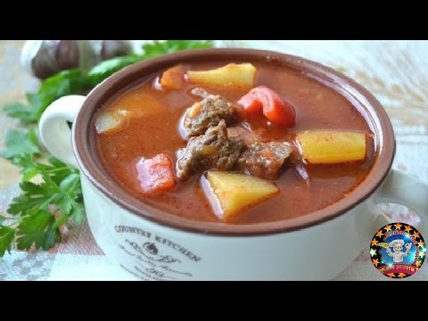 Вам понадобится : Говядина – 500 гр. Картофель – 500 гр. Лук репчатый – 150 гр. Помидоры – 2 шт. Перец болгарский – 2 шт. Чеснок – 2 зубчика Вода – 800 мл. Томатная паста – 1 ст. ложка Паприка сушеная – 1 ст. ложка Масло растительное для жарки Соль