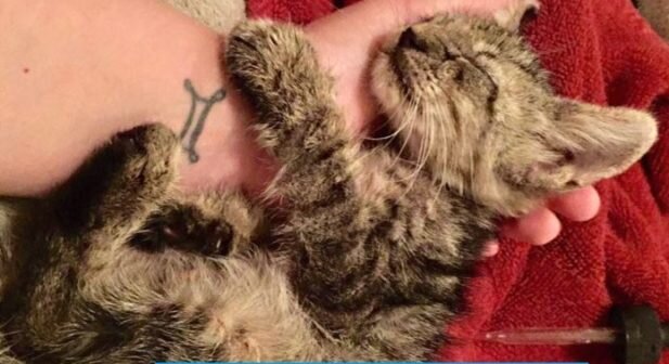 Девушка заехала на заправку по пути домой и неожиданно нашла котенка, лежащего в луже бензина.