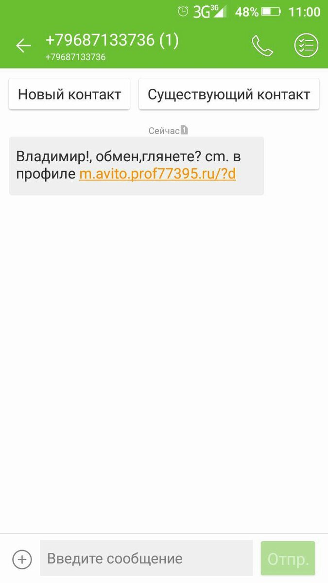 Признаться, я, как дитё малое, радуюсь очередной попытке мошенников развести лично меня. Во-первых, это очередной раз доказывает, что провести меня нелегко. Во-вторых, это хороший повод написать об этом разводе сюда. Иногда я продаю на «Авито» вещи, которые жалко выбросить, потому что они ещё могут быть использованы длительное время. И вот как-то отрыл я в кладовке старенький модем ADSL. Ну как старенький! Покупался полтора года назад всего. Сейчас он мне не нужен, поскольку на новой квартире имеется доступ в Интернет по выделенной оптоволоконой сети. Выставил я модем на продажу, сумму сбросил вдвое от того, что он стоит сейчас. Естественно, в объявлении указал номер своего телефона. И вот сегодня прилетает на него SMS-ка следующего содержания: «Владимир!, обмен,глянете? cm. в профиле m.avito.prof77395.ru/?d». Опаньки! Палец так и тянется нажать заветную ссылку, чтобы посмотреть, что там человек предлагает в обмен на мой модемчик. Да только вот ссылка-то очень странная, хоть и не с