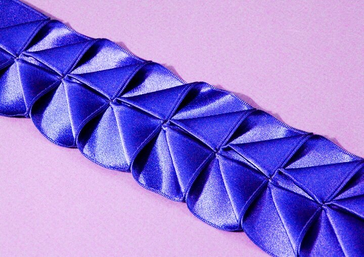 Поделки из атласных лент всегда пользуются большой популярностью. Чаще всего мастера делают из них цветы канзаши или разнообразные вышивки. Однако это далеко не единственный способ использовать этот прекрасный материал. Сегодня мы расскажем вам, как сделать из атласной ленты красивую декоративную плиссированную тесьму, которой можно украсить одежду и аксессуары. В этом пошаговом мастер-классе используется атласная лента шириной 2 см. Однако стоит отметить, что вы можете легко заменить ее на ленточку как более узкого, так и более широкого формата. С лентой в 1 см работа превращается почти в ювелирную, при этом сама поделка становится очень тонкой, миниатюрной и по-настоящему изящной. Такой декор пригодится для отделки воротничков и создания различных заколок и брошей. Если вы возьмете широкую атласную ленту (например, 8 см), работать вам будет гораздо легче, и из такой ленты вы можете сделать своими руками симпатичное украшение для волос или окантовку для подола. Вариантов очень много.