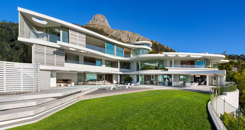 Этот двухэтажный дом в Кейптауне, Южная Африка, был первоначально разработан SAOTA десять лет назад, но когда он был куплен его новыми владельцами, они обратились к дизайнерам интерьера из ARRCC, чтобы отремонтировать дом. В доме есть бассейн, окруженный палубой с большим пространством для отдыха на солнце, а большая травянистая терраса открывает беспрепятственный вид на океан. Гостиная внутри имеет двойной потолок. Во всем интерьере, белый мрамор, гранит, брашированная нержавеющая сталь и бронзовые элементы были включены того, чтобы контрастировать с белыми стенами, которые уже присутствовали во всем доме. За гостиной находится минималистская кухня в легкой, нейтральной цветовой палитре, с белыми стенами, шкафами и серыми полами. В неформальном лаундже, раздвижные стеклянные двери открываются на террасу у бассейна и площадку для барбекю. Декоративная потолочная конструкция потолка притягивает взгляд вверх, делая комнату более высокой. В доме также есть кафейный лаундж