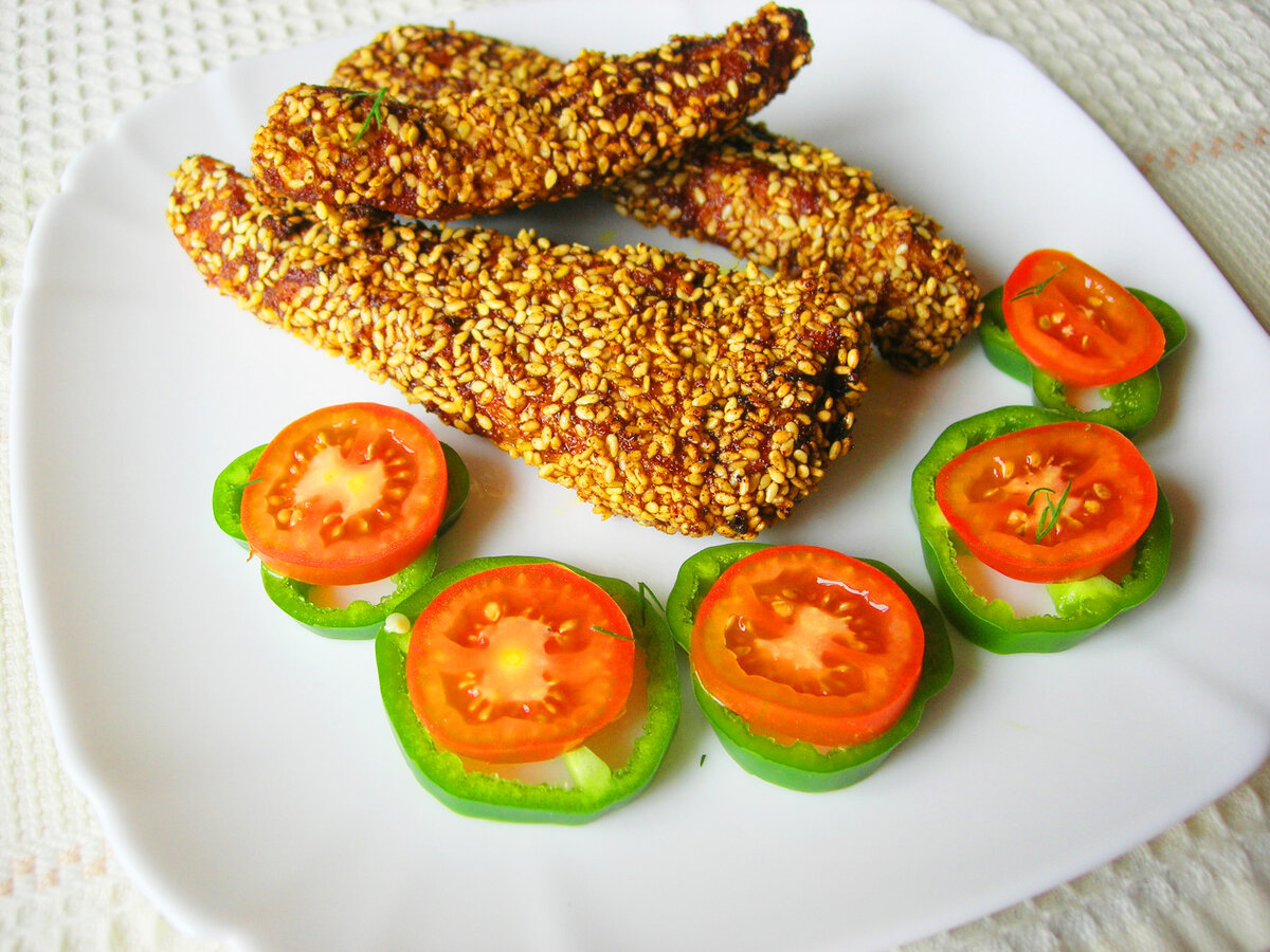 Отличный рецепт закуски для пикника или к пенному напитку. Всегда актуально смотрится на любом столе. Готовиться очень быстро, получается очень вкусной. Ингредиенты: Все подробности и процессы приготовления такой закуски, а также калорийность и время приготовления, можно посмотреть в коротеньком видео ниже! Шаги приготовления: 1. Маринуем куриное филе, нарезанное полосками в соевом соусе, в который предварительно нарезаем чеснок. 2. Смешиваем сухие ингредиенты: кунжут, паприку и приправу карри. 3. Замаринованное филе панируем в приготовленной смеси. 4. Обжариваем на сковороде до готовности. Приглашаю Вас посетить мой кулинарный блог о простых домашних рецептах, блюда по которым готовятся в моей семье многие годы. Также в моем кулинарном блоге вы найдете разные подборки рецептов: ВТОРЫЕ БЛЮДА ИЗ МЯСА, РЫБЫ, ПТИЦЫ И ОВОЩЕЙ. ПРАЗДНИЧНЫЕ РЕЦЕПТЫ: Пасха, Новый год, Дни рождения и много других праздников, которым Вы подготовитесь без проблем! РЕЦЕПТЫ НА РАЗ, ДВА, ТРИ очень простые и быстрые