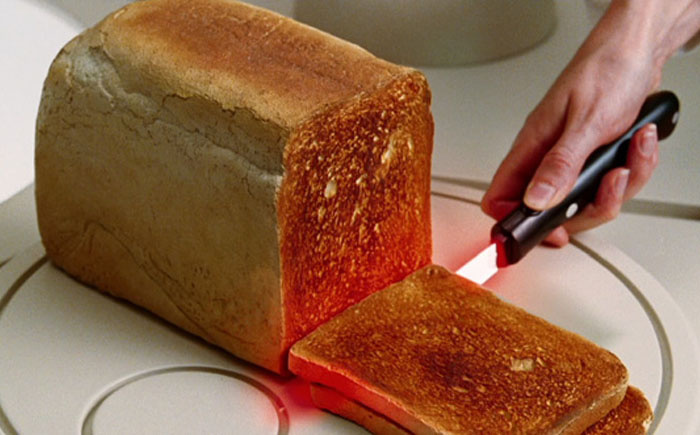 Британский изобретатель Колин Ферз придумал нож-тостер, который поджаривает хлеб во время его резки. В обычный нож вставлено небольшое устройство в виде модифицированного микроволнового трансформатора.