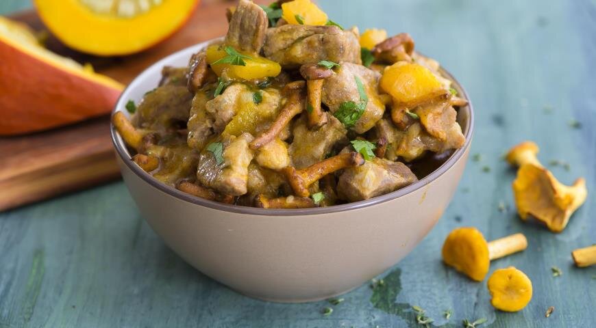 Нет ничего лучше прохладным осенним вечером, чем тарелка горячего ароматного рагу. В отличие от зимней версии, осенью в рагу не добавляют картофель, так блюдо получается более легким . ИНГРЕДИЕНТЫ ПОШАГОВЫЙ РЕЦЕПТ ПРИГОТОВЛЕНИЯ Шаг 1 Нарежьте мясо средними кубиками. Лук очистите и нарежьте маленькими кубиками, зубчики чеснока разрежьте пополам. Шаг 2 Разогрейте большую сковороду с 1 ст. л. оливкового масла и обжарьте лук на среднем огне до мягкости. Выложите мясо, приправьте солью и черным перцем, обжарьте на сильном огне до румяной корочки. Шаг 3 Добавьте в сковороду сливочное масло, чеснок, тимьян, продолжайте жарить еще 3 мин. Всыпьте острую и сладкую паприку, перемешайте. Шаг 4 Влейте вино, доведите до кипения, дайте вину выпариться, 2 мин. Влейте горячий бульон или воду и снова доведите до кипения. Уменьшите огонь, накройте кастрюлю крышкой и готовьте, пока мясо не станет мягким, примерно 1 ч 15 мин. Шаг 5 Почистите грибы, крупные нарежьте на части, мелкие оставьте целыми. Раз