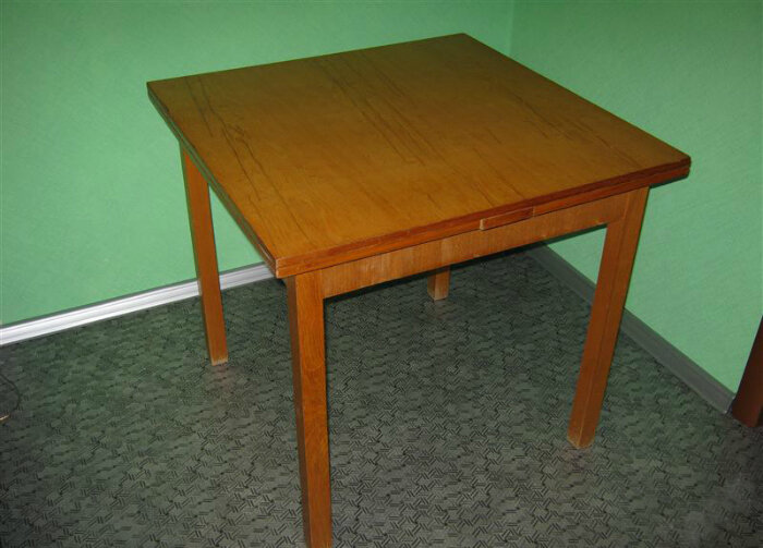 Вещи, сделанные своими руками, в последнее время приобретают всю большую популярность. Ведь они обладают неповторимой индивидуальностью и привносят в интерьер особую изюминку. Каждая хозяйка хочет создать в своей квартире уют, затратив при этом минимальные средства. И в этом случае техника "декупаж" станет лучшим выбором. Она не потребует от вас особого мастерства или специальных навыков, но результат при этом получается поистине волшебный. Посмотрите, как легко преобразить обычный кухонный столик при помощи отреза ткани и клея ПВА. Так невзрачно выглядел стол до начала работы. Необходимые материалы: - утюг;