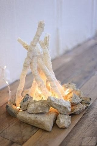 Для такого замечательного костра нам нужно: фольга, клей с кисточкой, белая материя (можно старые занавески ), высохшие палочки, аккуратные камешки светлых оттенков, гирлянда. 1) заворачиваем палочки в фольгу 2)Склеиваем кончики, можно подкрасить белой краской. 3) Обматываем палочки нарезанной полосками материей. 4)Раскладываем камни на полу в круг, в середину кладем гирлянду. 5)Ставим палочки на камни и наклоняем их друг к другу в центре и включаем гирлянду. Костер готов! Подписывайтесь на наш канал и ставьте лайки на статью, если вам понравился мой волшебный костер!