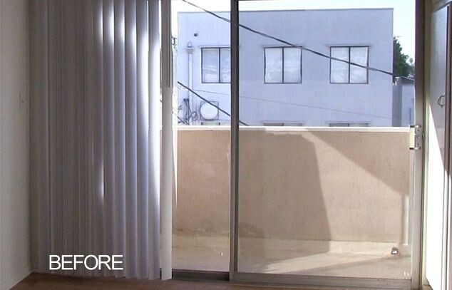 Типовой балкон превратился в зону отдыха с цветами и свечками, где можно перекусить и расслабиться. Бетонную стену задекорировали бамбуковыми циновками, для защиты от яркого солнца по центру установили жалюзи, а в углу поставили большой ящик-сиденье, который может одновременно служить и местом для хранения.