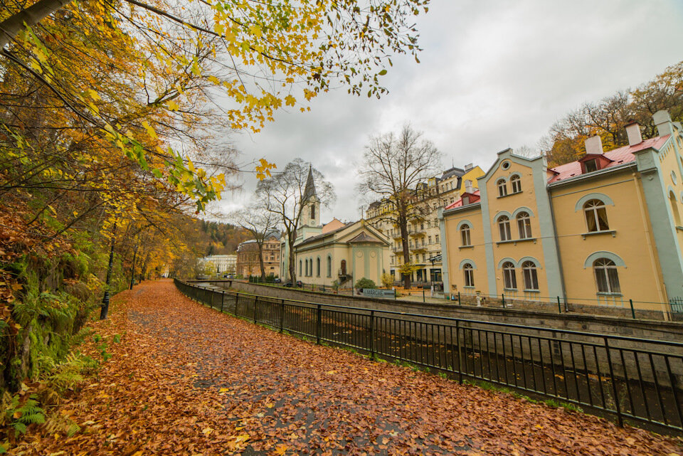 Предшествующая заметка: Осенняя Чехия. Прага. На третий день пребывания в Чехии метнулись в Карловы Вары. Несмотря на наслышанность, мои познания об этом месте были весьма скромны — был в курсе, что туда ездят лечиться и на этом в общем-то все. Из Праги до Карловых Вар всего ничего — 120 км, полная ерунда, учитывая что дорога отличная, пусть и узкая. Воспользовавшись этим невежеством, Карловы Вары застали меня врасплох. Все время пребывания там у меня было стойкое ощущение, что я оказался … в Красной поляне. Думаю, я не один такой оригинальный — подобное дежавю испытывают, наверное, все кто хоть раз был в Сочи. Если тем, кто не был ни там ни там не понятно в чем причина — отсылаю к своей же записи про зимний Сочи. А теперь смотрите фото ниже и делайте выводы. Что касается моих впечатлений от Карловых Вар — конечно же они мне понравились. Тихо, уютно и от этого немного скучновато. Обычная жизнь лечебного курорта. Да, у Карловых Вар есть своя изюминка в виде лечебных источников, но для м