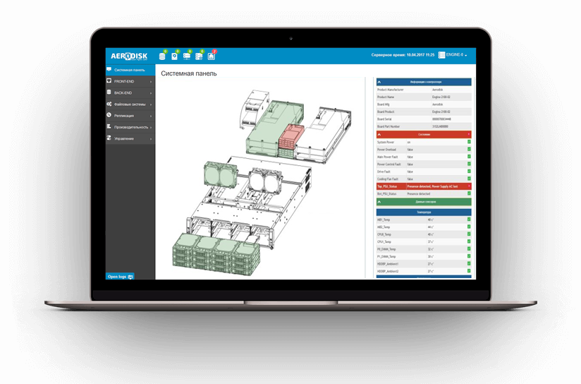 AERODISK — российский разработчик систем хранения данных. Начало разработок — 2011 г. Флагманский продукт компании — СХД AERODISK ENGINE — первая российская Hi-End СХД с лучшими показателями производительности и отказоустойчивости для ИТ-инфраструктуры любого масштаба и сложности. ПО AERODISK ENGINE (ACORE), зарегистрированное в Роспатенте и Реестре отечественного ПО Минкомсвязи, поставляется в виде АПК на базе российской платформы или c частичной локализацией и представляет собой сочетание мощного оборудования с передовым программным обеспечением российской разработки для обеспечения высокой производительности и максимальной защиты данных. Система хранения AERODISK ENGINE в полной мере реализует данные потребности.