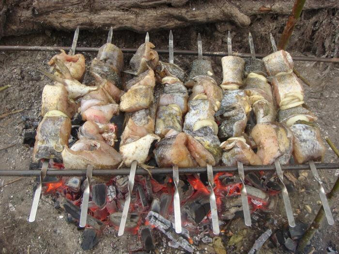 Совет: если для шашлыка вы брали соленое сало вместо свежего, рыбу нужно посолить совсем не много или не солить вообще.