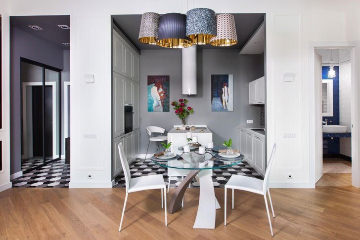 Пред нами замечательная современная квартира с довольно необычной планировкой в ЖК Сколково Парк от дизайнера Евгении Островской. Главная особенность этого интерьера — кухня без окон, которая благодаря совмещению с гостиной получает достаточно света, чтобы быть уютной и удобной. Также стоит отметить насыщенный синий цвет стен в спальной — смелое и оригинальное решения, которое стало изюминкой комнаты. Классная работа! Спасибо за просмотр! Не забывайте подписываться на наш канал, и получайте еще больше интересных идея для Вашего дома!