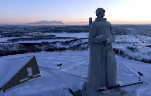 Защитник Заполярья смотрит на Кольский залив, где когда-то проводились жестокие бои, так называемая "Долина Смерти".