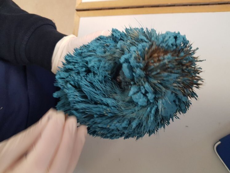 Зоозащитники из королевского общества RSPCA с большим трудом отмыли каждую иголку от ядовитой краски. Покрашенного ежа нашли случайно — в саду в английском графстве Сомерсет. Ещё немного, и ёжик бы погиб из-за токсичных веществ, попавших в его организм. Краска оказалась настолько едкой, что он получил небольшие ожоги. «Сейчас ёж получает всю необходимую помощь. Пока мы не знаем, сделал ли это кто-то намеренно или ёж сам случайно попал в краску, но нам ещё предстоит это выяснить», — член RSPCA Клара Скалли Зоозащитникам с трудом удалось избавить животное от краски, но не полностью. Бедолагу назвали Соником — в честь персонажа из видеоигры, отличительной чертой которого был синий цвет. «Животные могут оказаться в опасности даже из-за простой работы по саду. Накрывайте банки с красками крышками, по низу забора натяните сетку, чтобы ёжики не пробрались. Давайте вместе изменим ситуацию и защитим этих маленьких существ», — представители RSPCA
