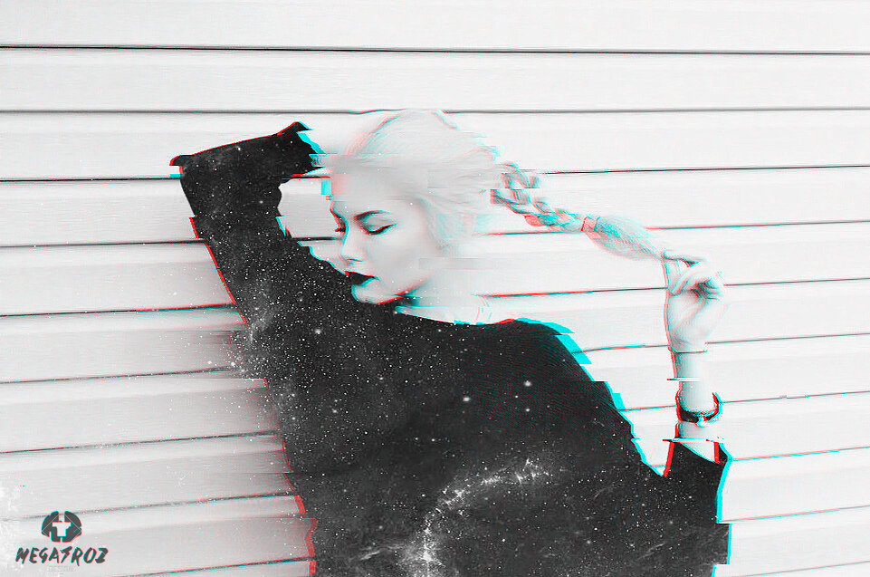 На новом слое мы будем смещать некоторые участки на теле. Выделяем область, зажимаем CTRL и смещаем туды - сюды пока нам окончательно не надоест и эффект не будет достигнут. Ну примерно как то так :) Я еще накинул на этот слой фильтр масляная живопись, ну реально, по приколу. ШАГ 3 Дублируем еще на 2 слоя. Идем в "параметры наложения" , оставляем галочку как на скриншоте. Первый слой должен остаться с буквой R, а второй с G.
