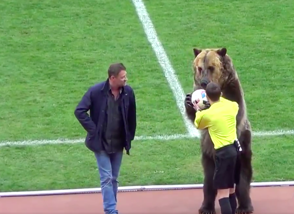 Британские СМИ немного паникуют из-за возможного появления медведей на матчах чемпионата мира по футболу. Когда я думаю о России, я думаю о нескольких вещах. Коммунизм, потенциальная мировая война и Путин, который ведет борьбу в сибирских лесах. На британском сайте unilad.co появилась информация о медведе Тиме, который подавал мяч во время гостевой встречи Машук:КВМ. Цирковое животное всего лишь подало мяч арбитру, но это вызвало волну критики со стороны организаций по защите животных. Русский медведь — один из самых узнаваемых символов страны в западных странах. Это не удивительно, он появлялся на агитационных плакатах, в фильмах, даже на логотипе правящей партии. Российская Империя, СССР, современная Россия — у всех в символах есть медведь. Среди зарубежных СМИ появились слухи об участии медведей в церемонии, которые распространились после видео с медведем Тимой. ФИФА опровергла участие медведей в церемонии, но обсуждения среди болельщиков утихнут нескоро. Гости России настолько го