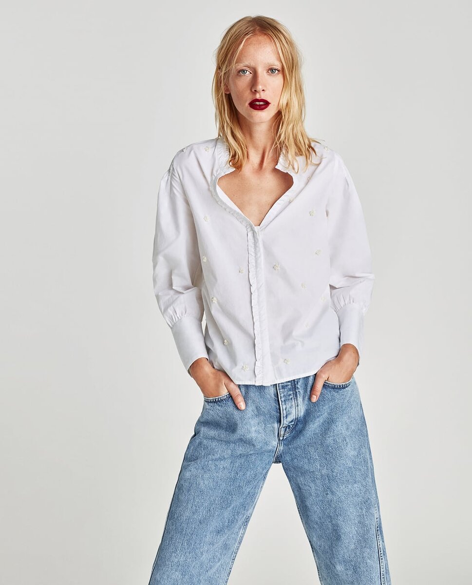 В составе базового гардероба любой девушки должна быть хоть одна стильная и красивая рубашка. Не стоит думать, что она лишь часть офисного стиля. В повседневной жизни рубашка не менее актуальна. Правильно комбинируя ее с другими вещами, в ней можно даже пойти на вечеринку. Какие новинки нам предлагают дизайнеры в 2018? При выборе цвета нужно помнить, что актуальными, как и в прошлом году остаются белый, голубой, синий и серый. Что касается белой рубашки, то такой вариант актуален всегда. 1 TREND Белая рубашка 2 TREND Рубашки в горошек 3 TREND Рубашки с оборками 4 TREND Рубашки из прозрачных тканей 5 TREND Рубашки на одно плече