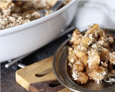 Овсяные хлопья смешать с миндалем, грецкими орехами и корицей. Полить двумя-тремя столовыми ложками меда и тщательно перемешать. Яблоки нарезать крупными кубиками, выложить в большую форму для запекания. Присыпать корицей, двумя столовыми ложками меда и перемешать. Сверху фрукты засыпать овсяно-ореховой смесью. Запекать в духовке 1 час при 160