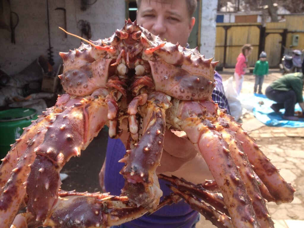 Обитающий в морях Дальнего Востока синий краб является одним из самых ценных промысловых ракообразных. Его размеры сопоставимы с камчатским – ширина карапакса может достигать 24-х сантиметров, а вес 5-ти килограмм. Своё название синий краб получил за расположенные по бокам пятна соответствующего цвета. При этом общий окрас сверху красно-коричневый, снизу же желтоватый или оранжево-жёлтый. Примечательно, что живущий в Охотском море синий краб имеет более яркую окраску, чем обитатель Берингова моря.