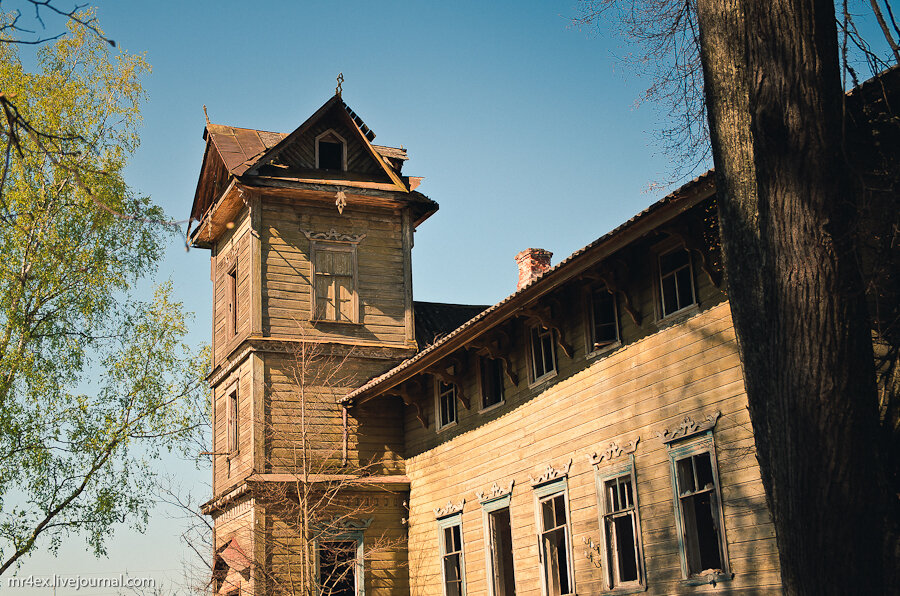 Архитекторы говорят, что она построена в стиле модерн. То-то я узнаю мотивчик, который повсеместно пихают в современную белорусскую архитектуру. Я про башню говорю. Только разница в том, что тут она выглядит красиво и к месту. Жаль, что усадьба заброшена и почти разрушена. А между прочим ее можно купить на аукционе. Там кое-где даже еще обои есть и печки. Хозяином, судя по всему до прихода большевиков, был дворянин Болычев. Чем конкретно он занимался, я так и не понял, вроде секретарем при суде работал. Но не суть. Важно, что сейчас дела у недвижимости плохи.