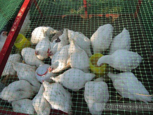 Irinmark взяла 25 трехнедельных цыплят весом 640 грамм, заселила в переносной куродомик (вольер 3х1,4 метра, из которых 1х1,4 – домик, где цыплята спали, а 2х1,4 – выгул на травке). Забивала в возрасте 3-3,5 месяца, дольше кормить невыгодно. Вес к забою был в среднем около 4 кг. Качество мяса не сравнимо с покупным, правда, чуть жестче, но запах бульона все компенсировал.
