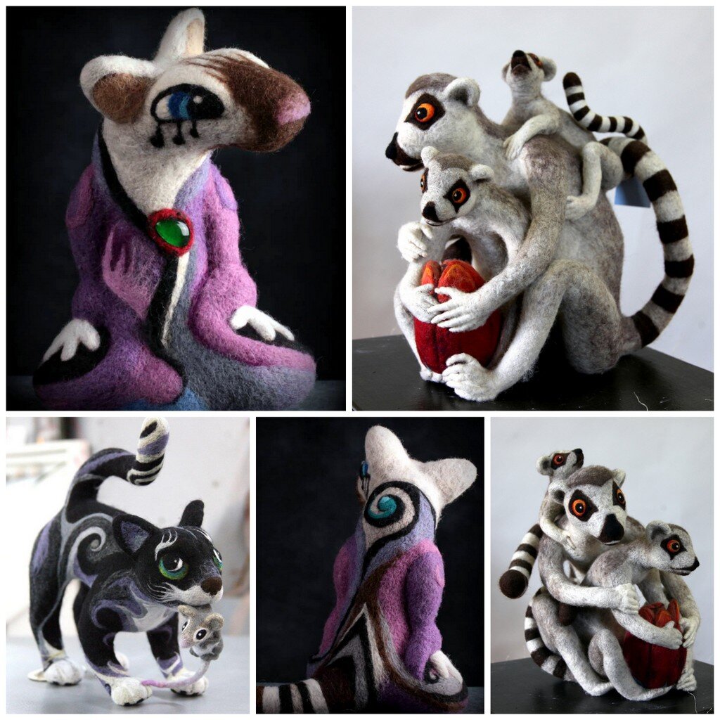 Дорогие друзья! Сейчас в галерее выставляется коллекция валяных работ интереснейшего мастера из Санкт- Петербурга – Яны Боевой. Те, кто следит за нашими проектами, знает, что нас с Яной связывает многолетняя дружба и совместные проекты. Когда-то, когда галерея на Ветошном 13 только начиналась, в рамках проекта «Кукольный переулок» мы делали персональную выставку Яны, потом был создан проект по ее авторской сказке «Ловец снежных крыс», даже начата работа по подготовке ее к изданию, над которым мы работаем с художниками-иллюстраторами из Питера Ольгой Попугаевой и Дмитрием Непомнящим. Многие работы Яны вошли в постоянную экспозицию выставки «Япония. Куклы, сказки и легенды»…