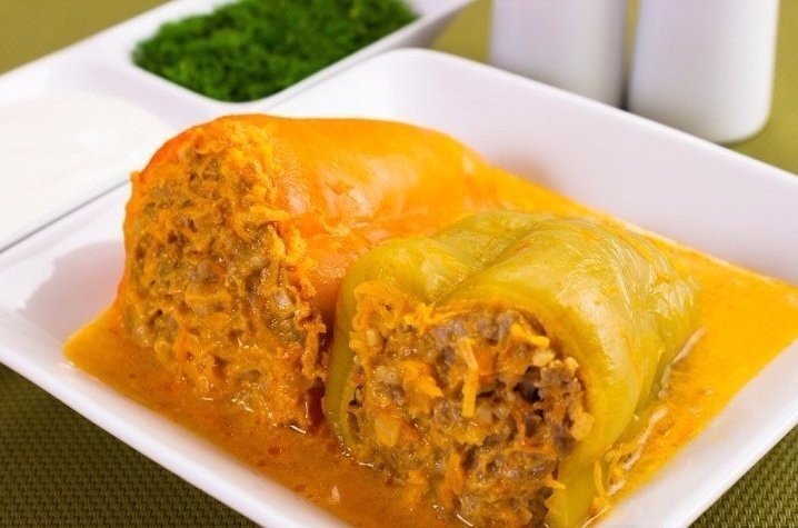 Тушить на среднем огне, под крышкой, около 40 минут. Подавать со сметаной или с соусом, в котором тушились перцы.