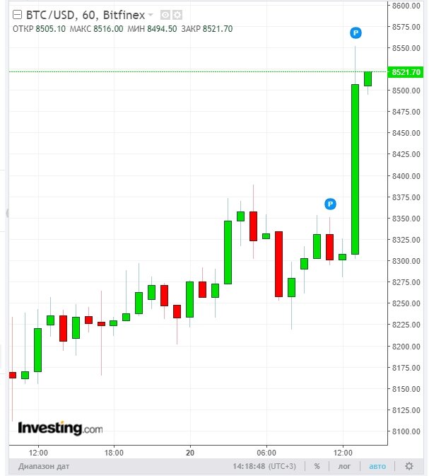 По состоянию на 14:00 МСК, курс биткоина к доллару достиг отметки $8 500, последний раз такой курс у первой криптовалюты был практически месяц тому назад - 25 марта. Аналитики отмечают, что рост курса биткоина на прошлой неделе был вызван несколькими причинами. Во-первых, в США подходил к концу период подачи налоговых деклараций, и к концу недели большинство участников рынка успели подать отчетность. Во-вторых, значительное влияние на курс криптовалюты оказала стабилизация торговых отношений между США и Китаем, который пошел на уступки. В случае отсутствия негативных новостей, курс "цифрового золота" в ближайшее время может пробить отметку в $9 000. По мнению аналитиков, биткоин, успешно избежав коллапса ниже отметки в 6000 долларов, скорее всего, уже прошел локальный минимум и дальше криптовалюту ждет рост – если не повторятся крупные продажи криптовалюты и не будет рыночных манипуляций. Аналитики не исключают, что в долгосрочной перспективе курс биткоина может подняться до 20 тысяч