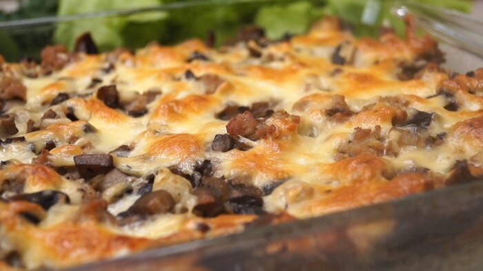 Рецепт рисовой запеканки с фаршем и грибами, простое и вкусное блюдо, хороший вариант для ужина. Ингредиенты: Рис – 200 гр.