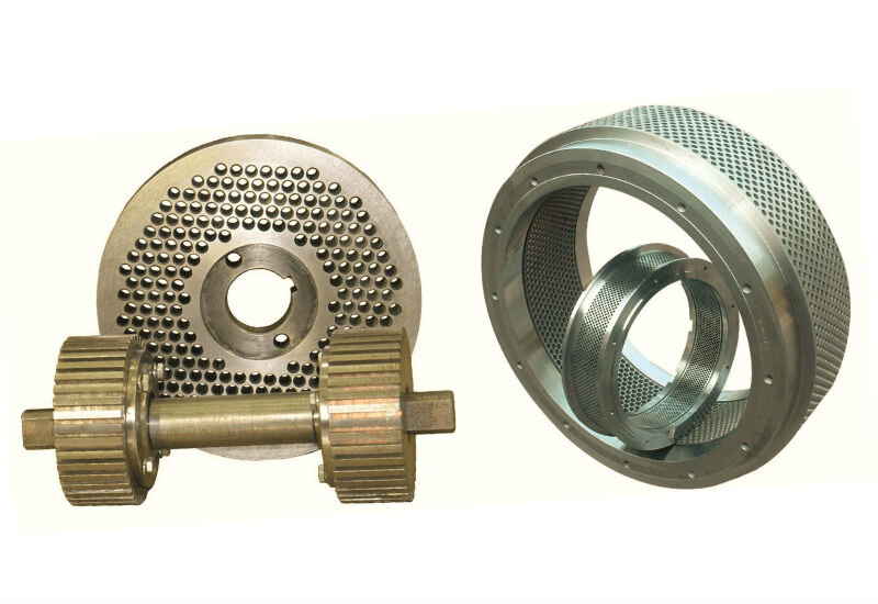 Матрица гранулятора – это один из ключевых элементов устройства, стальная деталь со множеством отверстий, через которую под давлением пропускается питательная масса при гранулировании.