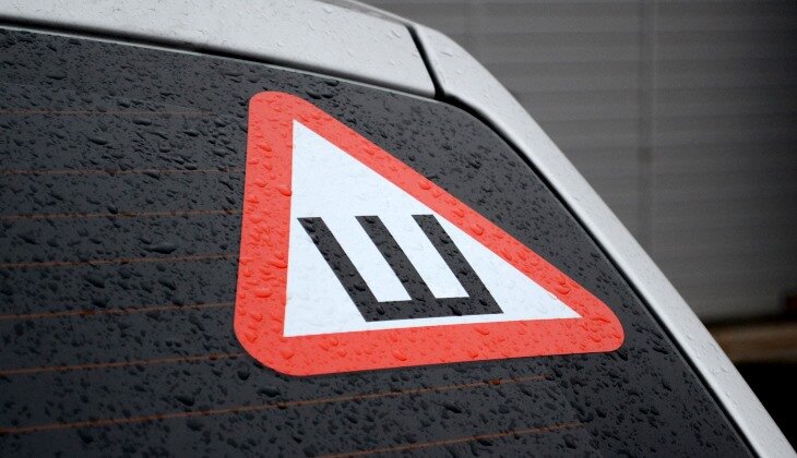 Данные наклейки начали клеить автоводители в конце прошлого года, когда за их отсутствие при езде на шипованных колёсах начали штрафовать.