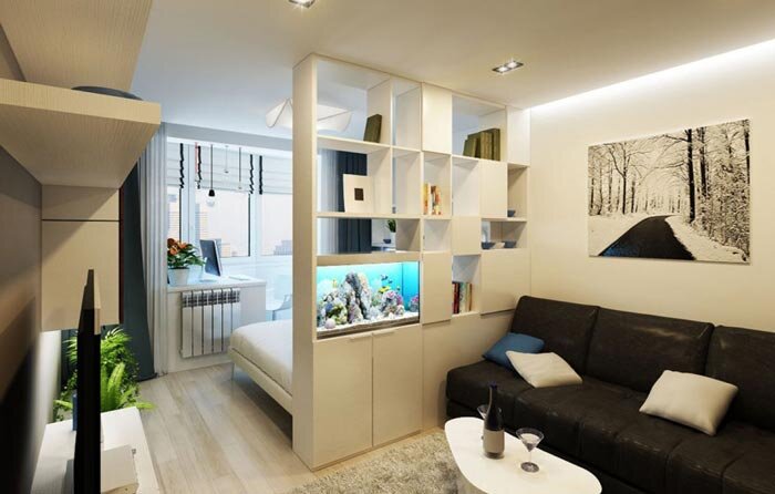 Современные реалии жизни не всегда позволяют иметь просторную жил площадь, но все-таки хочется выделить несколько зон. Сегодня мы рассмотрим варианты как это сделать. Что можно сделать? Современный и удобный способ – это быстровозводимые перегородки. Самый простой способ ширма. Конструкция ширмы – это ряд рамочных полотен (от1 до 6), которые скреплены между собой петлями. Обычно ширмы ставят в углом или гармошкой. Есть и варианты с прямой установкой, но в этом случае нужны специальные подставки. Также неплохими ограничителями служат шкафы или стеллажи. Лучше всего в интерьере смотрятся конструкции без задней стенки. Если же вы хотите использовать полностью закрытый шкаф, то стоит обратить внимание не только на фасад, но и на боковые стенки. Часто производители украшают только фасад. Вы всегда можете обратиться в специальные мастерские, где вам смогут сделать все, что вы хотите по запросам. Еще не плохим вариантом, и достаточно бюджетным, будут этажерки для цветов. Благодаря растениям