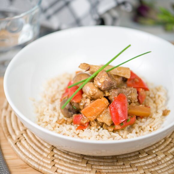 Полезный гуляш из говядины с овощами и грибами. Альтернатива жаренному вредному мясу