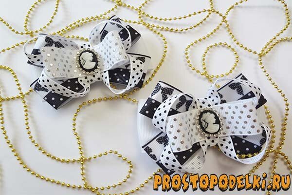 Они прекрасно подойдут под парадный наряд на 1 сентября, а затем девочка сможет носить эти необычные украшения каждый день, ведь в них нет ничего лишнего. Черный и белый цвет – это классика, которая всегда будет уместна. Давайте рассмотрим, как сделать такие заколки на зажимах.