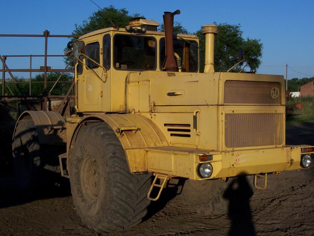 Рожденный в 1975 году, един в двух лицах. Вот таким Кировец был в 1975 году. Двигатель V12 ЯМЗ-240Б, маленькое окно в правой части кабины, два гидробака за кабиной. Вид сзади. Двигатель ЯМЗ-240. Впоследствии, на трактор К-701 устанавливали старый проверенный ЯМЗ-238 и он назвался К-700А. Отличить один от другого при заглушенном двигателе и закрытых щитках двигателя задача весьма нетривиальная. Рентген-схема трактора К-700А. Ранний вариант трактора, встреченный на дорогах Ростовской области, но уже с высокой трубой воздухоприемника. В 1978 году от двух раздельных гидробаков отказались и за кабиной устанавливался единый бак. В начале 80-х отказались и от маленького окошка и до 2002 года Кировец выпускался в неизменном виде. С установкой двигателя ЯМЗ-240 с раздельными головками блока цилиндров Кировец получил индекс К-701Р. На экспорт поставлялись Кировцы с защитной кабины при опрокидывании. Кировец К-701 на широкопрофильной резине низкого давления. Широкое применение наш