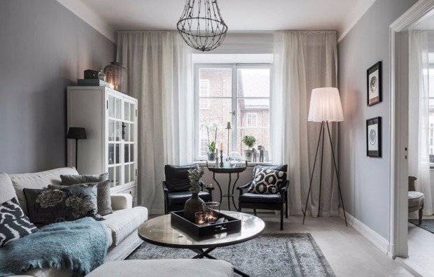 В центре престижного и дорого района Остермальм, в прекрасном городе Стокгольм, находится уютная квартира площадью 71 квадратный метр. Интерьер оформлен в серо-белых тонах – чтобы «подружить» множество вещей разных стилистических направлений и эпох. В этой статье мы расскажем, как дорого и бюджетно повторить его у себя дома! 1. Отделка Дорого: Стены покрасьте декоративной краской. На пол выложите качественный паркет и хороший керамогранит. На кухне используйте натуральный камень! Сделайте его единым со столешницей. Бюджетно: сэкономить на отделке довольно просто. Используйте краску там, где это возможно. Паркет замените ламинатом такого же оттенка дерева. Купите накладные панели, имитирующие рисунок камня, вместо мраморного фартука. Воздержитесь от использования натуральных материалов. 2. Мебель Дорого: важно, чтобы каждый предмет был удобным в использовании. Не экономьте на качественной кровати и матрасе, приобретите раскладной диван, чтобы можно было пригласить к себе гостей на ночь