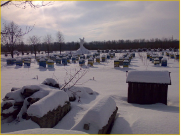 Если пчелиные семьи сильные и хорошо обеспечены высококачественными кормами (по 2 -2,5 кг меда на улочку), то уход за ними заключается в поддержании соответствующей температуры и влажности воздуха в зимовникам, обеспечении их покоя. Однако нужно постоянно следить за ходом зимовки семей. Зимой состояние каждой пчелиной семьи определяют по общему шуму. В первую половину зимы (декабрь, январь) пчел посещают меньше всего 2-3 раза в месяц, а во второй половине (февраль — март) — еженедельно, а в дальнейшем — дважды в неделю. Температуру в зимовнике поддерживают на уровне 0-4 °С, относительную влажность воздуха — 75-85%. Для создания таких условий регулируют вентиляцию — увеличивая или уменьшая приток или выход воздуха через вентиляционные трубы. В каждом конкретном случае температуру и влажность воздуха в зимовниках следует поддерживать такими, при которых пчелы меньше шумят. Необходимо стараться успокоить семью, если она шумит даже периодически, так как при этом жизнеспособность зимующих