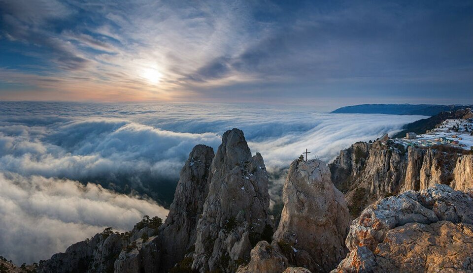 Высота самого крупного пика Ай-Петри составляет 1234 м. Плато на вершине горы составляет площадь в районе 310 квадратных километров. Название гора Ай-Петри получила от греков, что в переводе означает «Святой Петр». Примерно 230 миллионов лет назад Ай-Петри было дном моря и в результате движения титанических плит данная скала начала свой подъем и примерно 1,9–2,1 миллиона лет назад обрела тот вид, который мы видим. Вершину горы часто называют «Зубья дракона» из-за острых выступов. Весь массив горы постигается на расстоянии около 26 километров и является самым высоким и большим в Крыму.