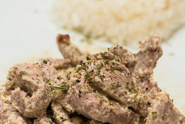 ИНГРЕДИЕНТЫ - Свинина 1 кг. - Сметана 500 г. - Чеснок 4 зубчика - Перец черный молотый по вкусу - Хмели-сунели 0,3 ч. л. ПРИГОТОВЛЕНИЕ 1. Мясо вымыть, порезать на гуляш и выложить в лоток или сковороду для запекания. 2. В отдельной посуде смешать сметану и майонез, добавить толченый или тертый чеснок, черный перец на кончике ножа, 14-13 чайной ложки хмели-сунели, соль по вкусу, после чего все тщательно перемешать. 3. Полученным соусом залить мясо и поставить в духовку. Запекать примерно 30 минут при температуре 250 градусов. Приятного аппетита!