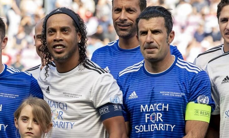 В БЛАГОТВОРИТЕЛЬНОМ МАТЧЕ ДРУЗЬЯ ФИГУ ПЕРЕИГРАЛИ ДРУЗЕЙ РОНАЛДИНЬО