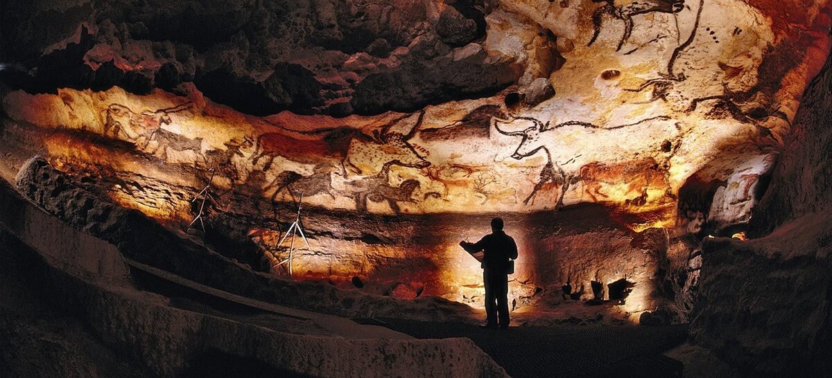 В 1868 году археолог-любитель Санс де Саутуола и его дочь Мария открыли пещеру Альтамиру. Обычно в этой пещере прятались от непогоды пастухи и охотники, и никогда не замечали или не хотели замечать то, что скрывают недра пещеры. Ведь если не ждёшь чего-то необычного, это необычное очень ловко скроется из поля зрения. Так и происходило несколько сотен лет, пока дочь Санс де Саутола не подняла голову вверх. То, что она обнаружила, её поразило. Однако, поразить-то поразило, но всё же научное сообщество вплоть до XX века не принимало это открытие всерьёз. И что же скрывалось во мраке той пещеры? Великолепные полихромные рисунки, выполненные охрой и углём, протянувшиеся на восемнадцать метров в длину и на девять в ширину. Сложно представить объём этой композиции, не наблюдая её воочию. Это самое известное произведение верхнего палеолита - Большой плафон. В его центре представлены в разных позах 15 бизонов, олени, несколько фигур лошадей, а также кабан, очень редкий образ для наскаль