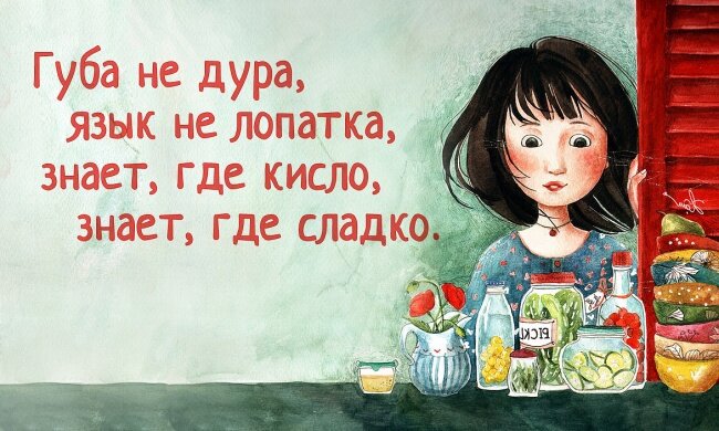 - Губа не дура, язык не лопатка, знает, где кисло, знает, где сладко.