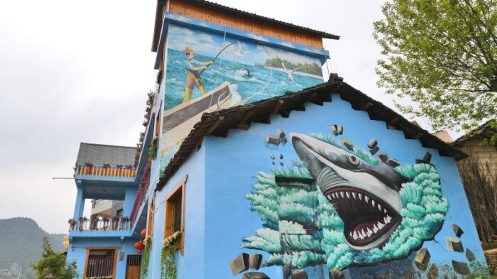 Китайскую деревушку разукрасили 3D-муралами для привлечения туристов