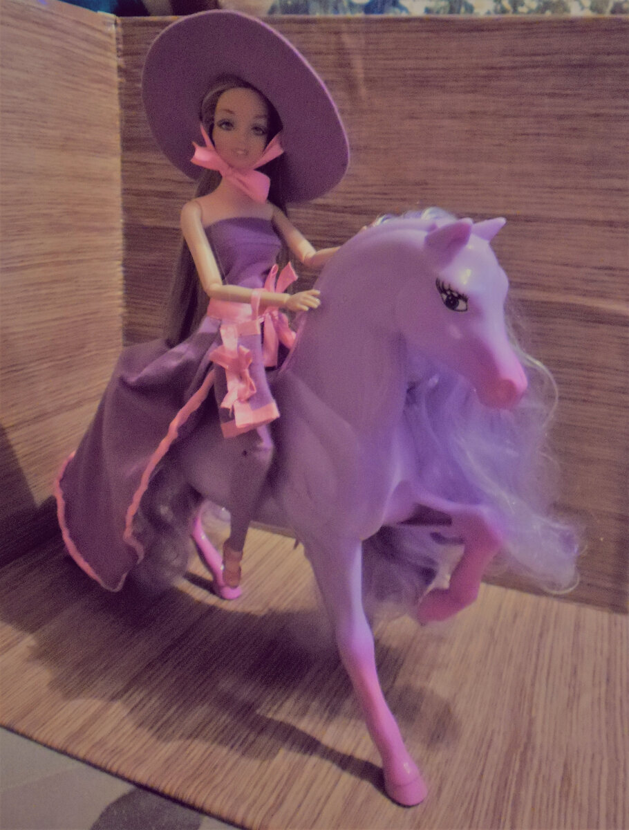 Решила как-то раз Барби на охоту поехать, а может, просто "выгулять" новую "амазонку". Лошадку зовут Лукреция. Отдолжили у соседской девочки. Костюм "амазонка" сшит из обычной старой футболки. Розовую тесёмку купили в галантерейном магазине. Костюм сшит руками буквально за один вечер. Изящная шляпка на головке дополнит наряд и укроет от солнца. Фото делал сама модельер. Юбка снимается, и если надо одевается. А это фото профессионального фотографа на фоне кухонного гарнитура. Понравилось? Так оцените работу художника!