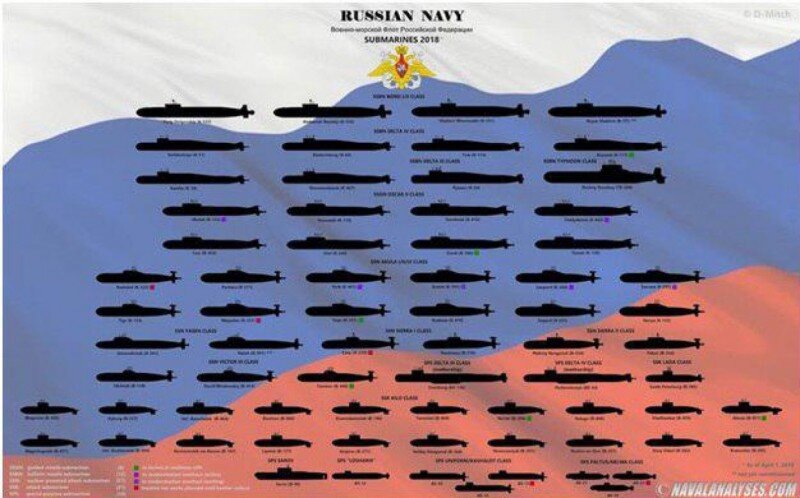 Ужасающая мощь: весь подводный флот России на одной схеме.