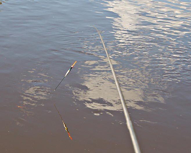Поплавок, поднятый вверх, не отпугивает рыбу. Она спокойно подходит к наживке. Это качество особенно важно при ловле рыбы на небольшой глубине. Если после заброса, вашу снасть сносит сильным течением, потребуется добавить груз.