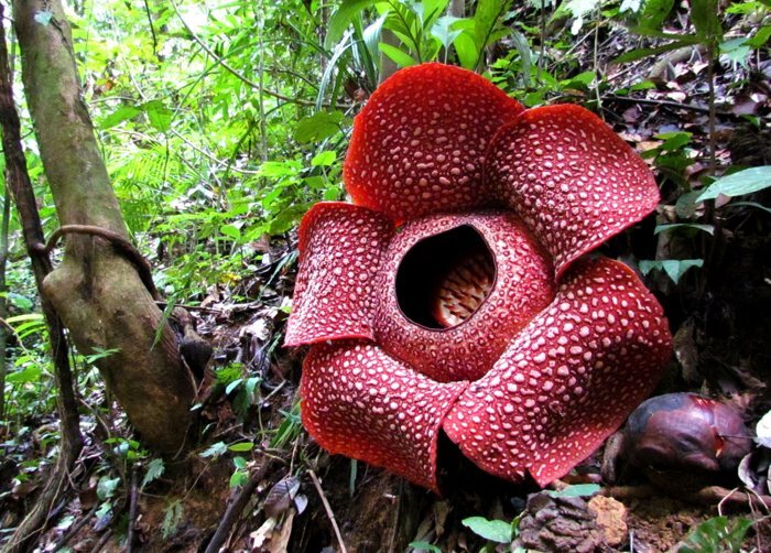 Наша планета – дом для 300 тысяч видов растений, некоторые из которых поражают своей необычностью. Раффлезия Арнольда – самый большой цветок в мире. Он является паразитирующим растением и растет только в Юго-Восточной Азии. Один цветок весит 8-10 кг, а его диаметр достигает 1 м. Раффлезию Арнольда по праву можно назвать самым широким цветком планеты. Живет растение внутри корней тропических лиан, заявляет о себе только 1 раз в год и цветет всего 4 дня. Когда цветок исчезает, он оставляет после себя плод, напоминающий тыкву. Раскрывшийся бутон обладает для людей очень неприятным запахом, но очень нравится мухам. Росянки, растущие по всему миру – одни из самых распространенных насекомоядных растений. На Земле существует около 100 видов этого растения. Росянки имеют очень необычные листья, верхняя часть которых покрыта волосками с клейкой жидкостью. Капля привлекает внимание жертвы, у которой остается мало шансов спастись, как только она коснется липкой жидкости. Листья очень чувствитель